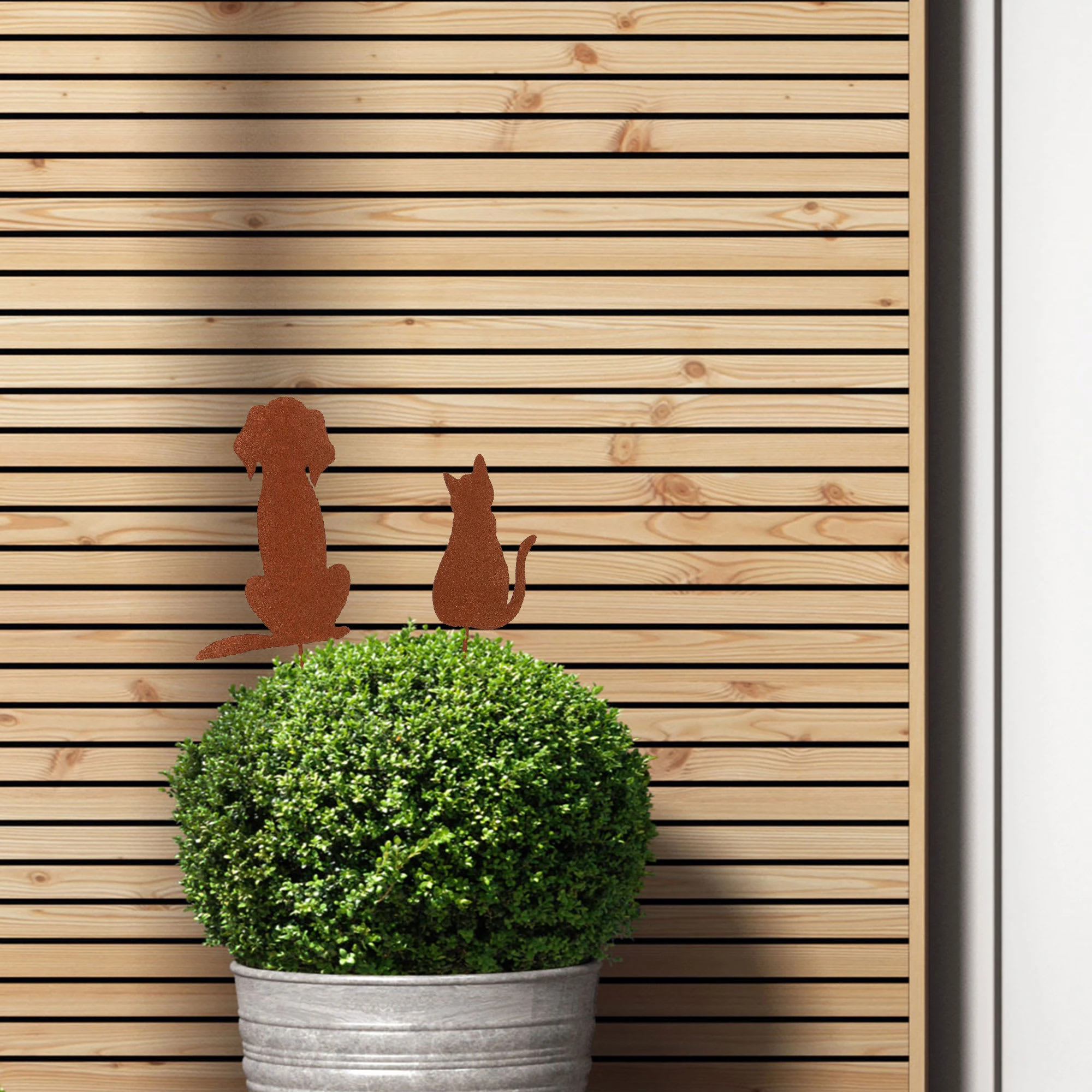 UNUS Garden Hund und Katze Gartenstecker 2er Set, Gartendeko Rostoptik, Roststecker aus Edelrost Metall, Rost Deko für Garten Terrasse Balkon Blumentopf