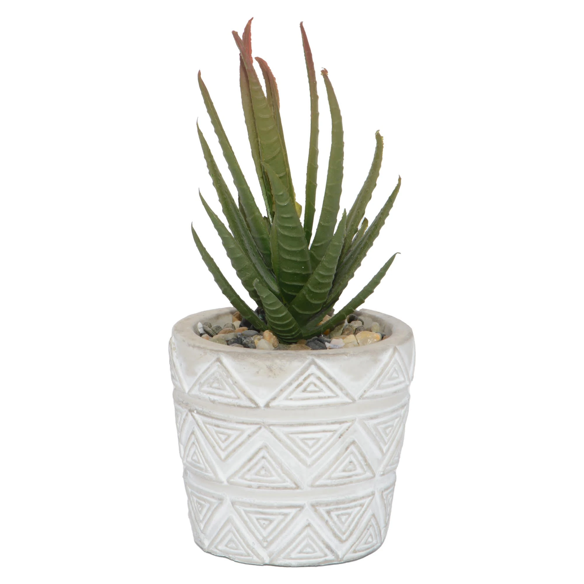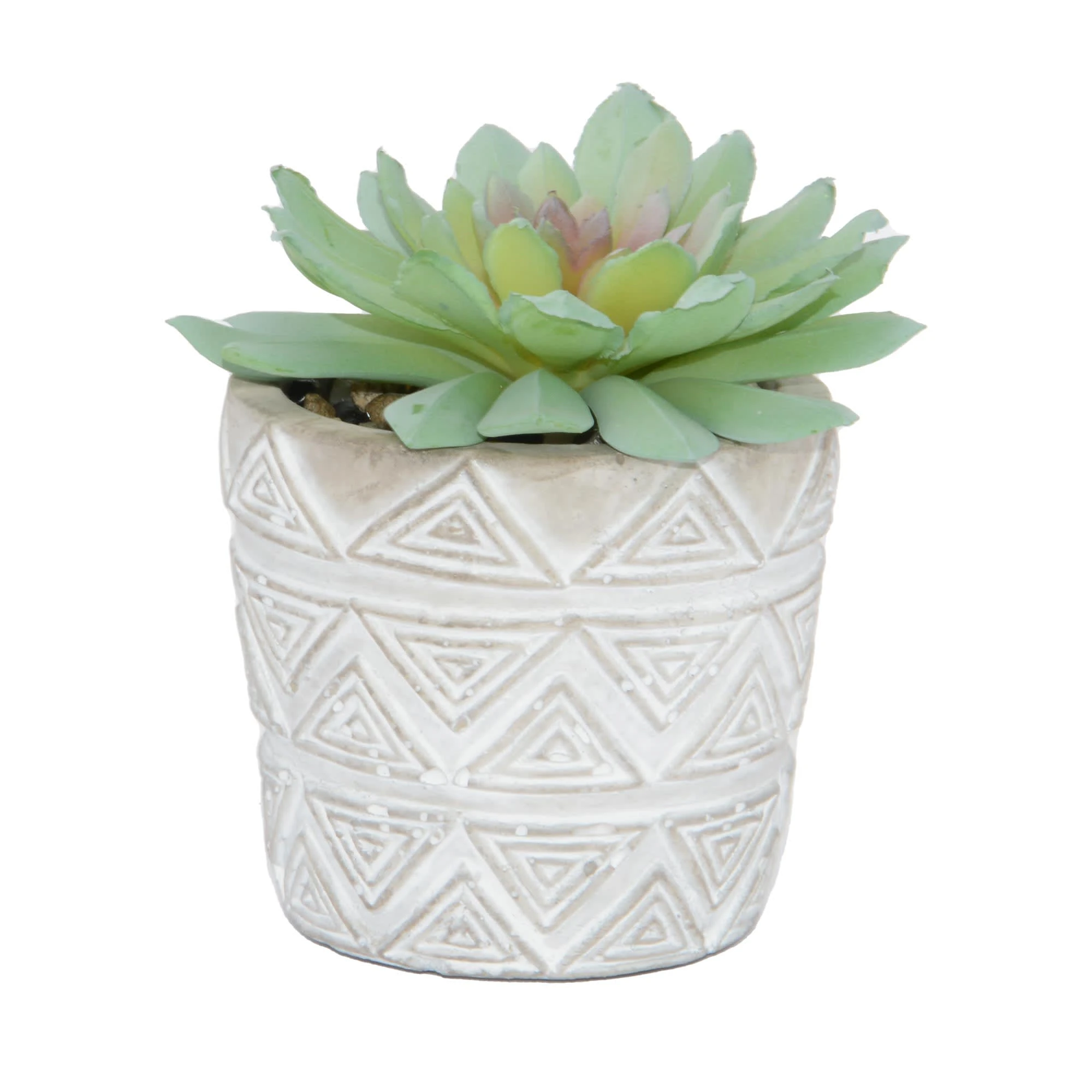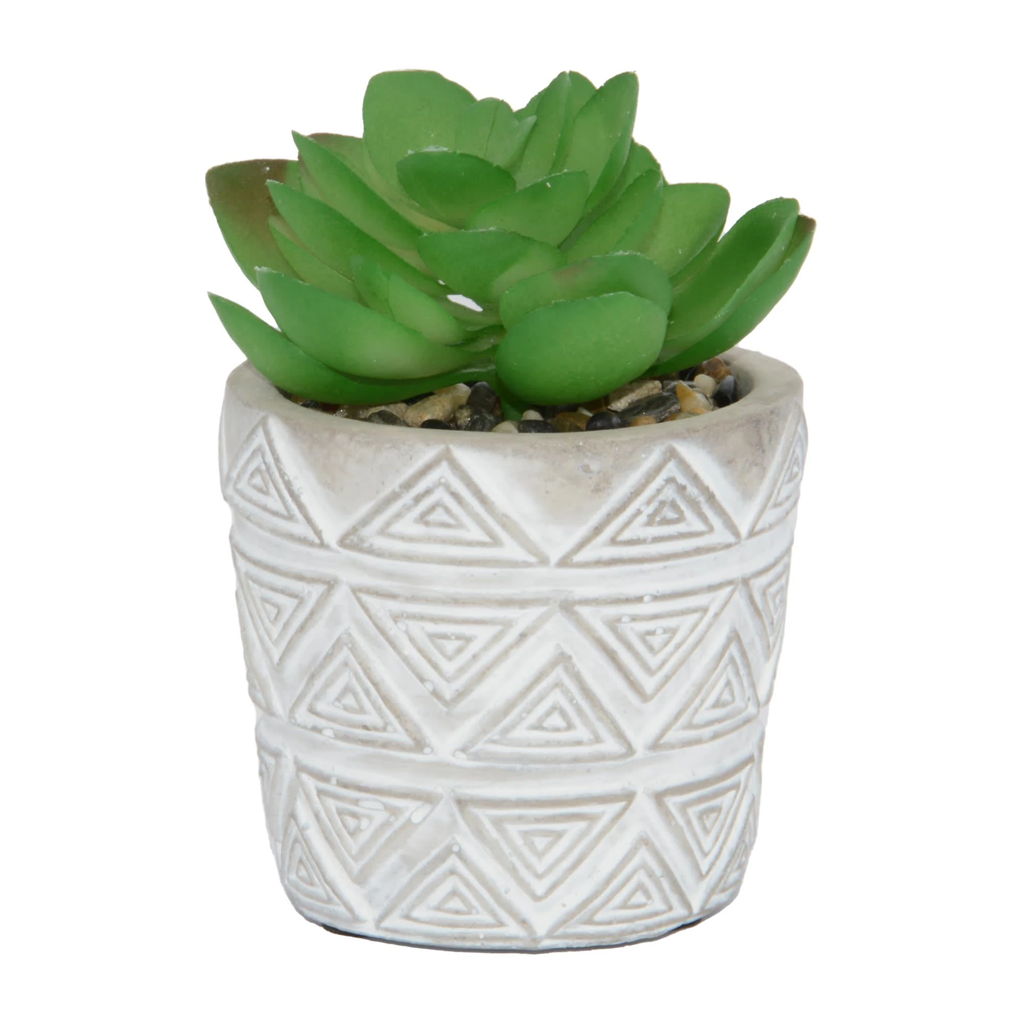 UNUS HOME Kunstpflanzen in Betontöpfen 3er Set, Kunstblumen im Topf klein, künstliche Sukkulanten mit Töpfen