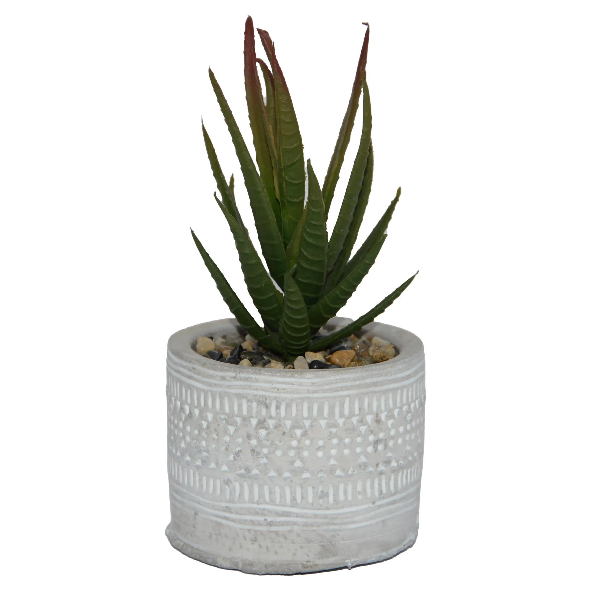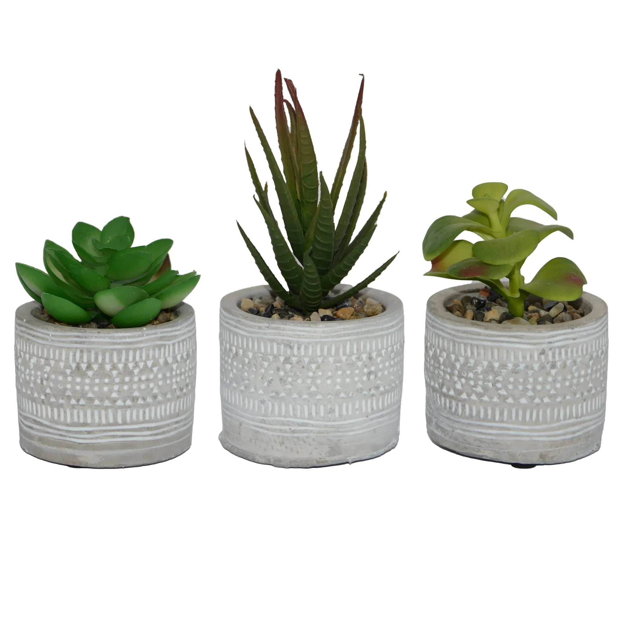 UNUS HOME Kunstpflanzen in Betontöpfen 3er Set, Kunstblumen im Topf klein, künstliche Sukkulanten mit Töpfen