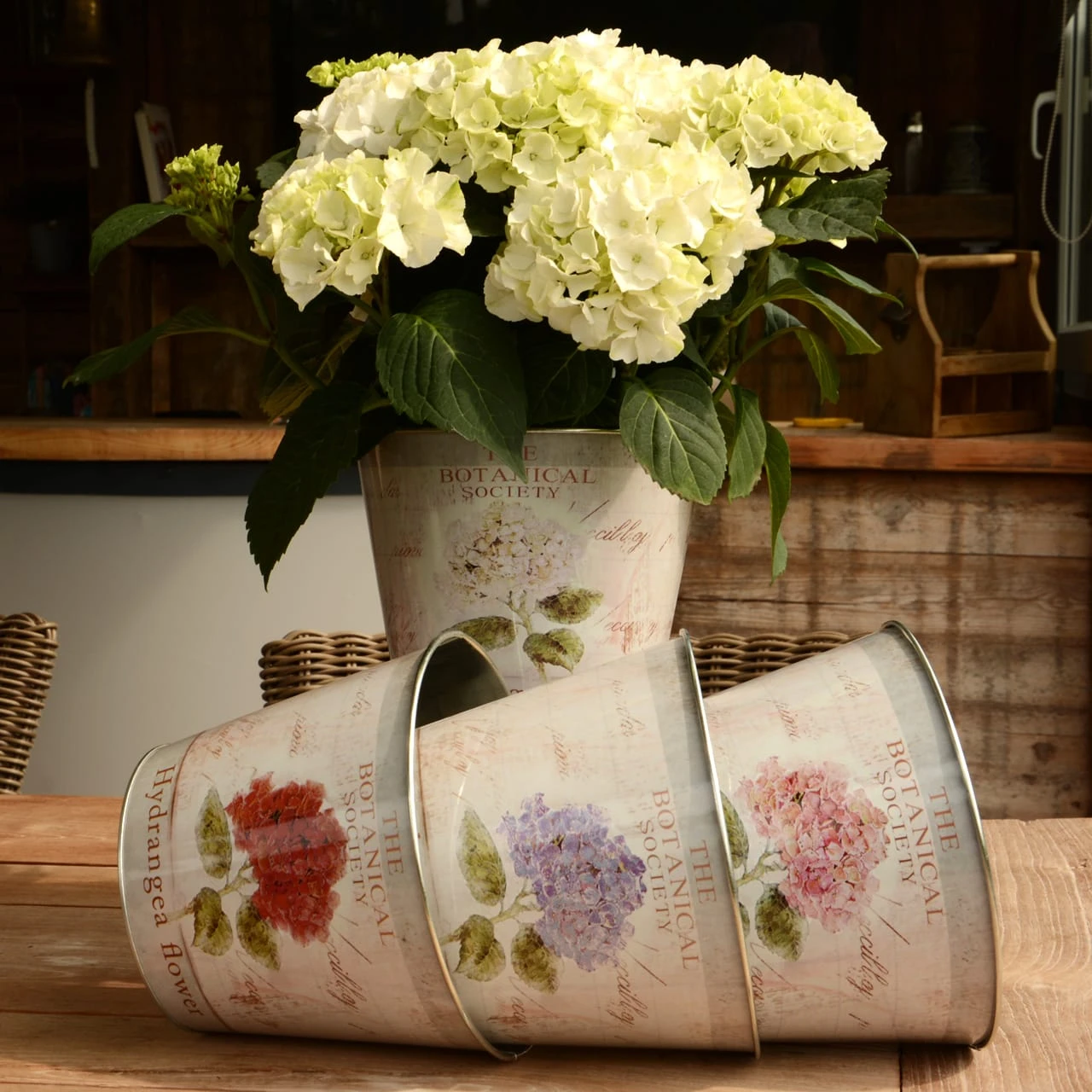 4er Set Hochwertiger Pflanztopf / Blumentopf aus Zink mit Hortensien Motiv 21cm