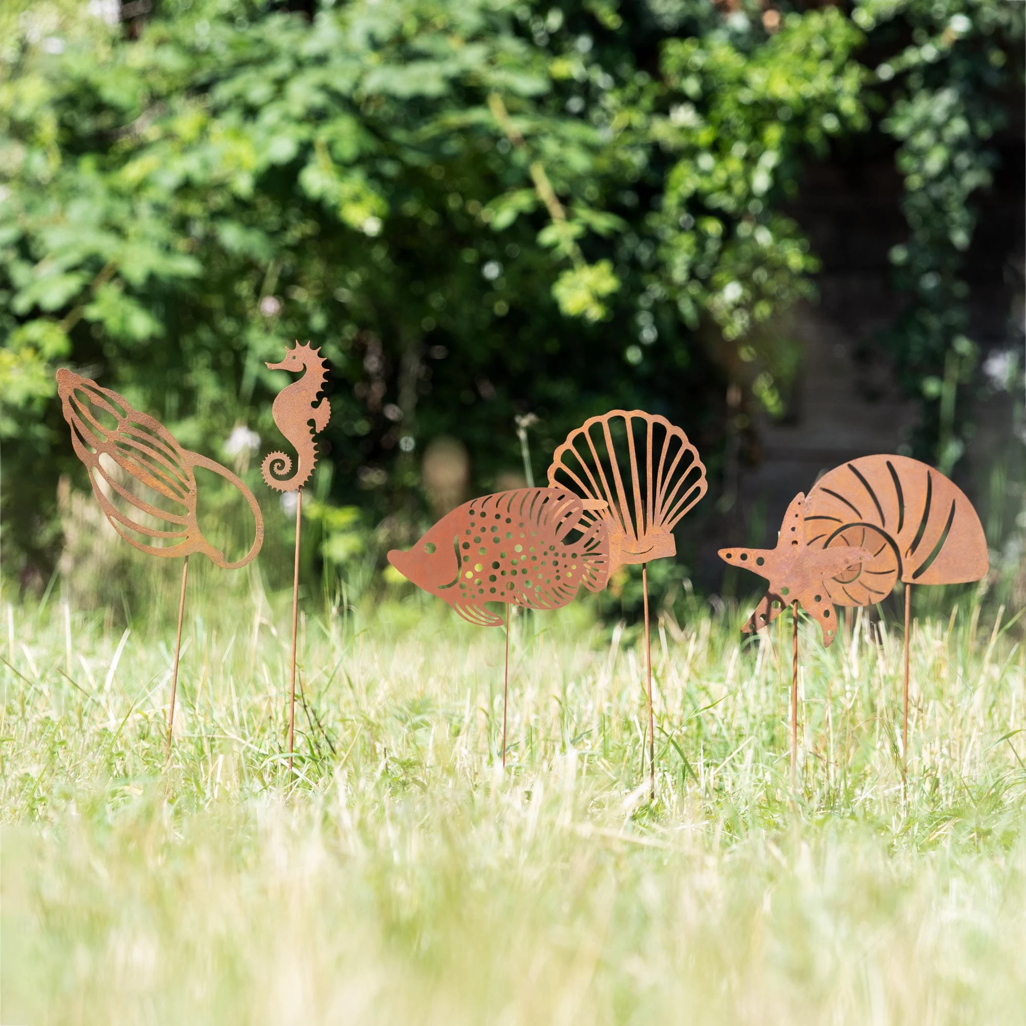 Schöne Gartendekoration Fische und Muscheln 6er Set aus Metall für Ihren Garten, Balkon oder Terrasse
