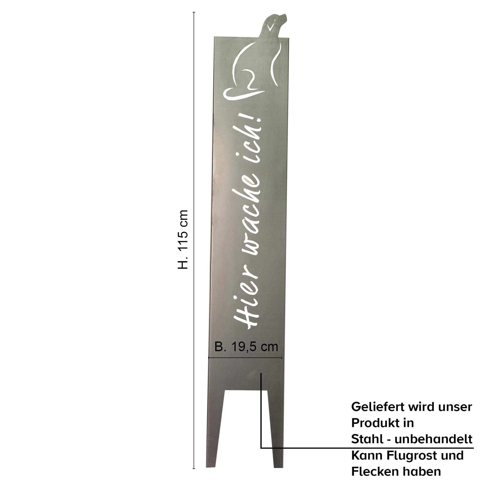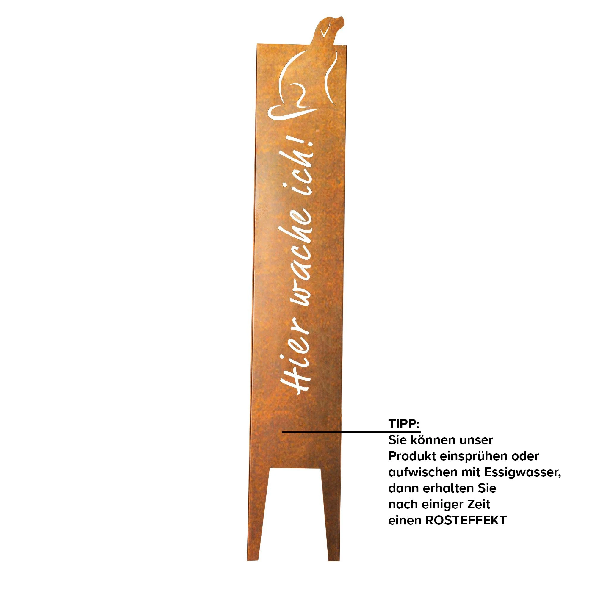 Das Gartenschild kann Flecken und Flugrost aufweisen.