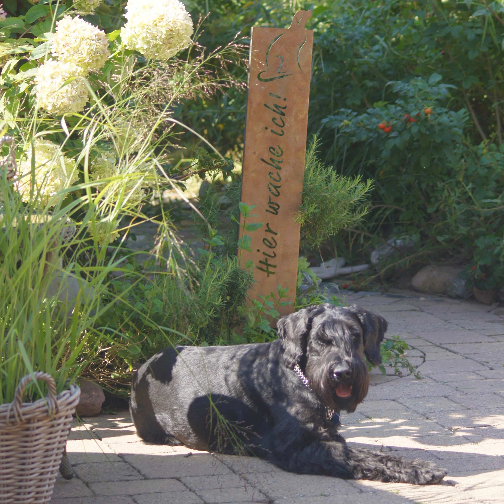 UNUS GARDEN Gartenschild Hund, hier wache ich, Gartenstecker Metall, Design Gartendeko
