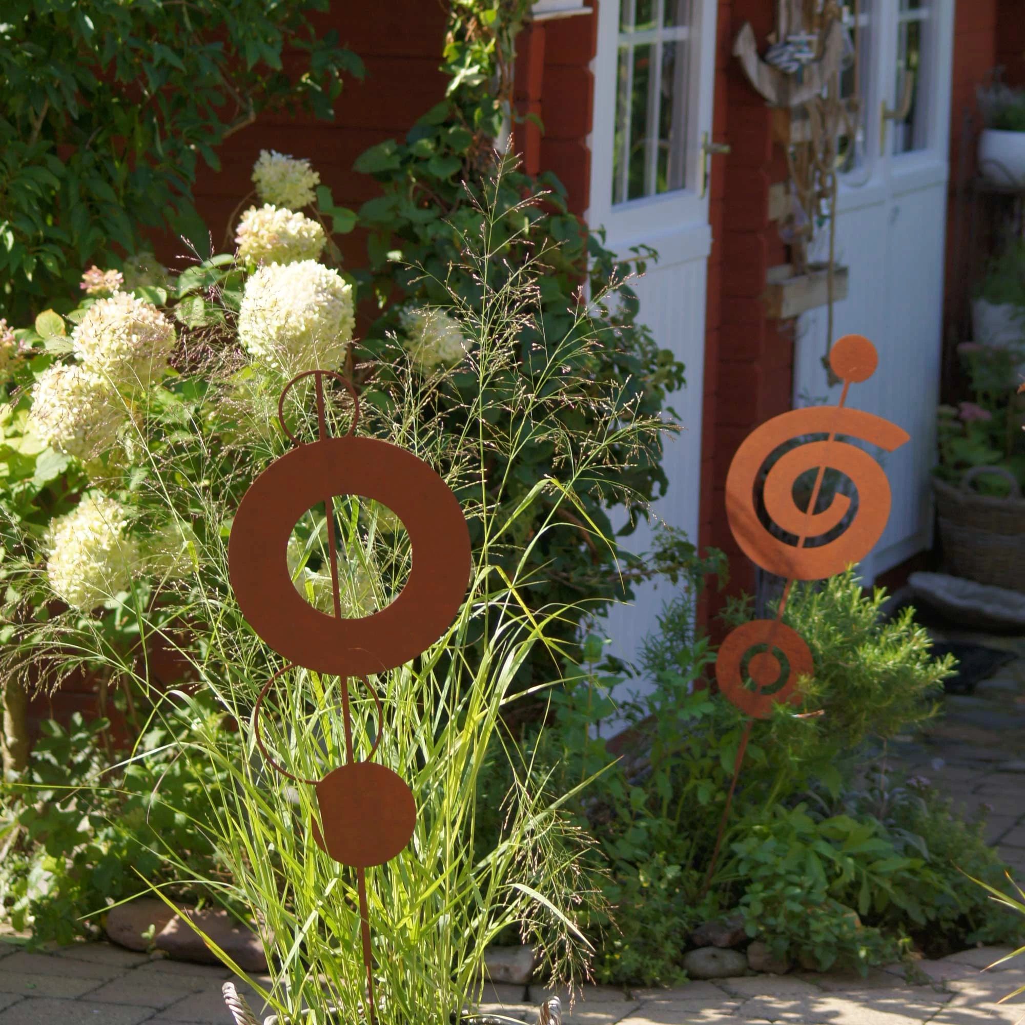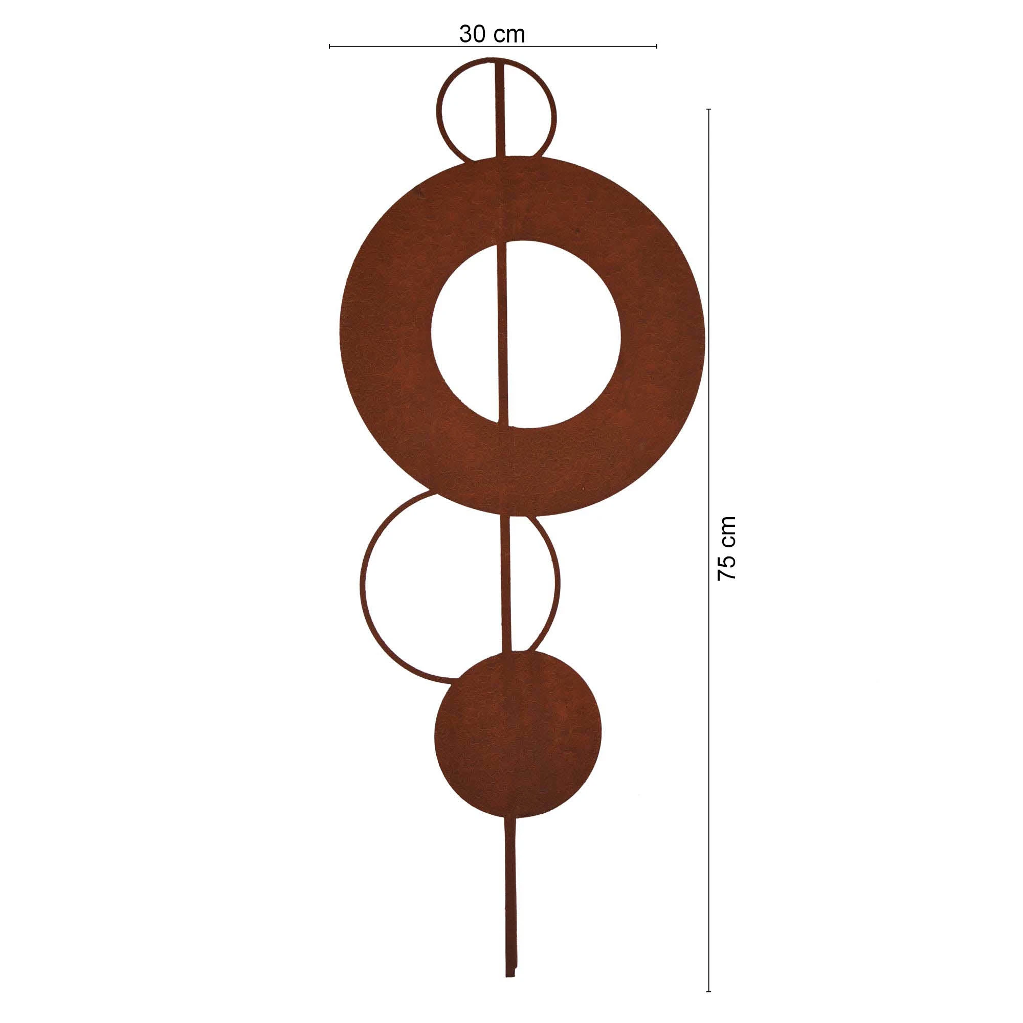 UNUS GARDEN Gartenstecker Rost Design Stab mit Kreisen