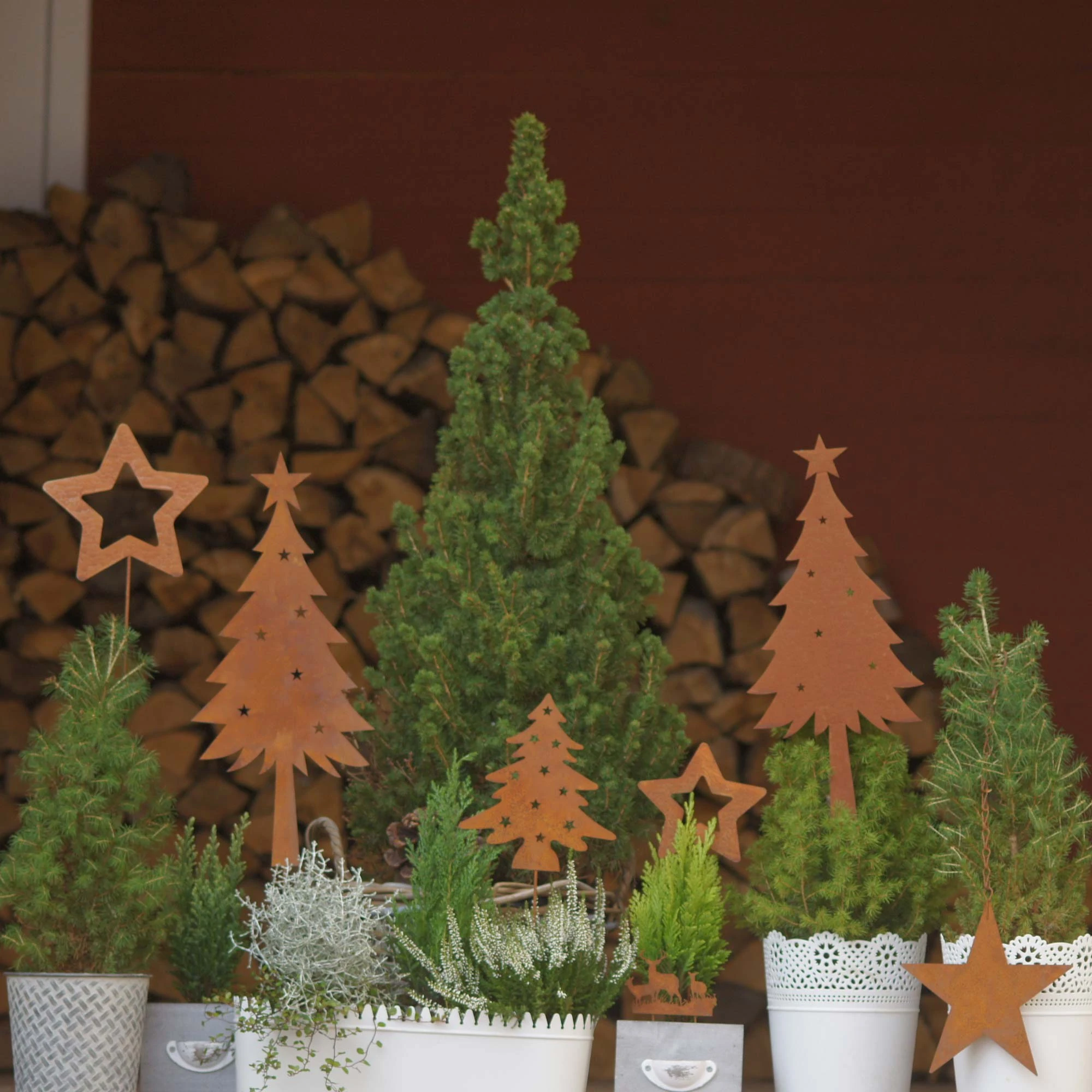 Schöne Gartendekoration Weihnachtsbaum mit Stern aus Metall für Ihren Garten, Balkon oder Terrasse