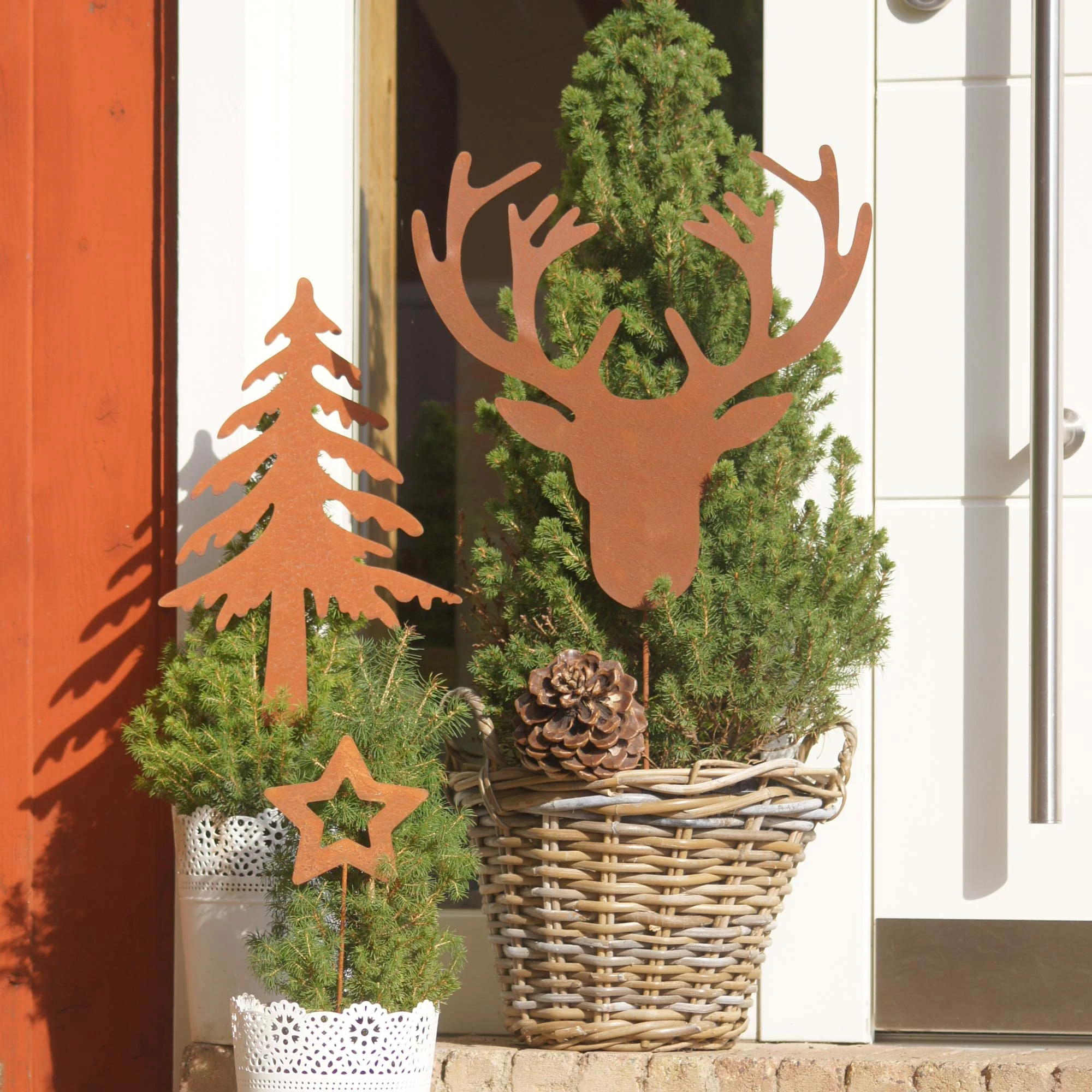 Schöne Weihnachtsdeko Hirschkopf aus Metall für Ihren Garten, Balkon oder Terrasse