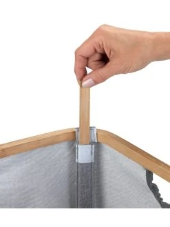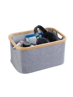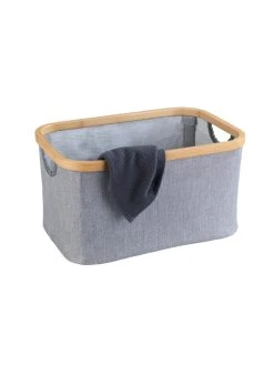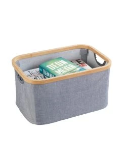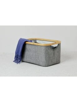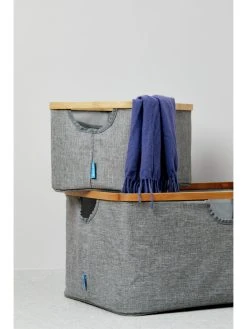 Der schöne, graue Aufbewahrungskorb besteht neben dem nachhaltigen, braunen Bambusrahmen aus pflegeleichtem Polyester. Die stilvolle Aufbewahrungsbox eignet sich ideal zur strukturierten Aufbewahrung von Kleidung, Zeitschriften, Accessoires, Fotos, Spielzeug und anderer Utensilien. Der Aufbewahrungsbehälter macht eine gute Figur im Schlafzimmer, Kinderzimmer, Wohnzimmer und gesamten Haushalt.
