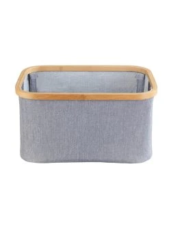 Der schöne, graue Aufbewahrungskorb besteht neben dem nachhaltigen, braunen Bambusrahmen aus pflegeleichtem Polyester. Die stilvolle Aufbewahrungsbox eignet sich ideal zur strukturierten Aufbewahrung von Kleidung, Zeitschriften, Accessoires, Fotos, Spielzeug und anderer Utensilien. Der Aufbewahrungsbehälter macht eine gute Figur im Schlafzimmer, Kinderzimmer, Wohnzimmer und gesamten Haushalt.