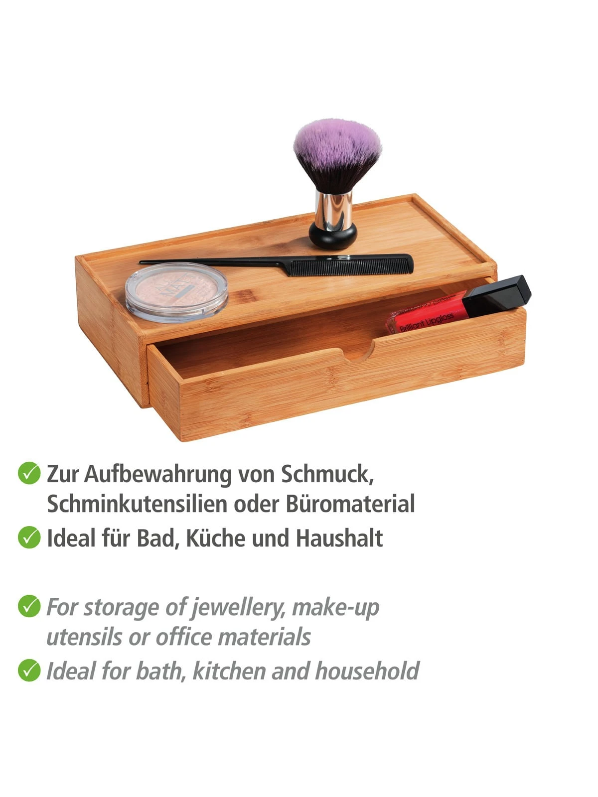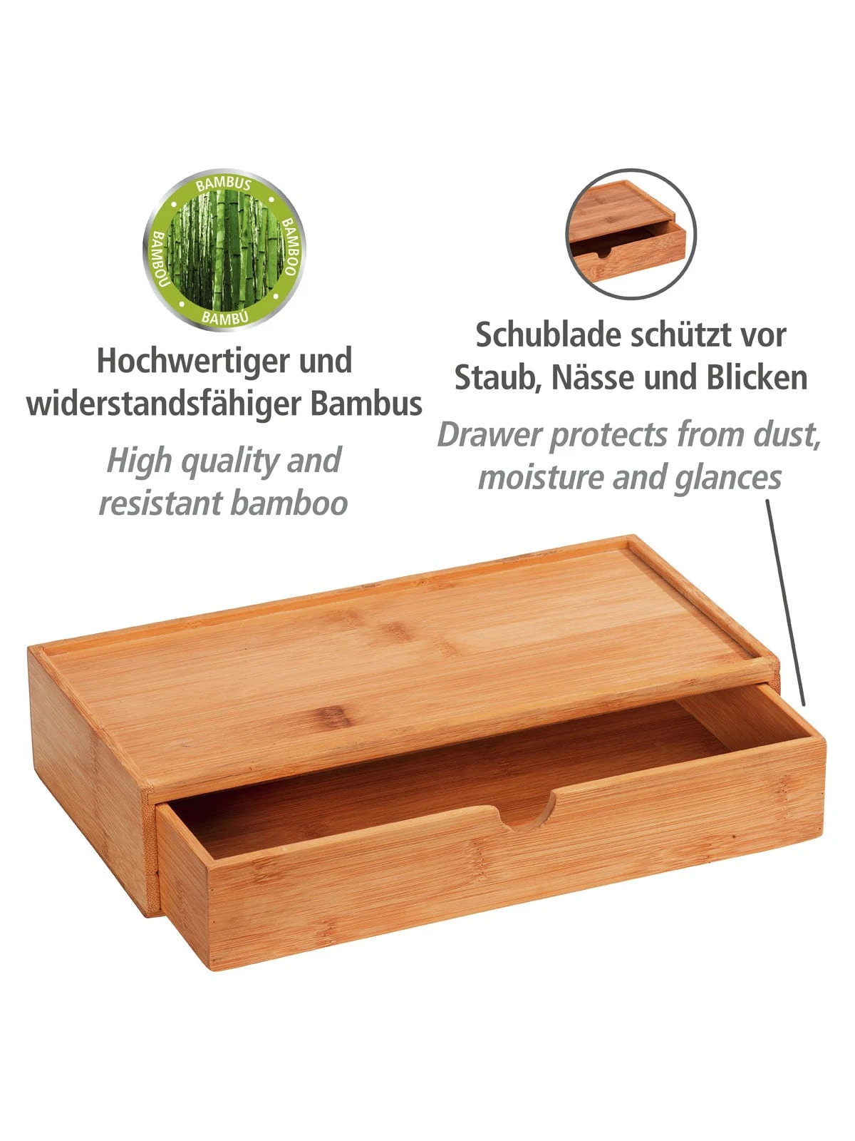 Gefertigt ist die attraktive Aufbewahrungsbox aus hochwertigem Bambus, welcher hart und widerstandsfähig ist. Auch unter ökologischen Aspekten bietet das Material klare Vorteile: Bambus ist ein schnell nachwachsender Rohstoff und liegt absolut im Trend.