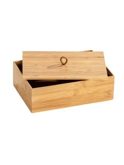 Gefertigt sind die attraktiven Aufbewahrungsboxen aus hochwertigem Bambus, welcher hart und widerstandsfähig ist. Auch unter ökologischen Aspekten bietet das Material klare Vorteile: Bambus ist ein schnell nachwachsender Rohstoff und liegt absolut im Trend.