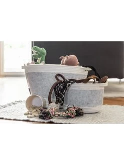 Damit sich ein einheitliches Konzept in Ihrem Hause integriert, gibt es die charmanten Aufbewahrungskörbe Bea in S, M und L. Darüber hinaus bildet ein praktischer Wäschesammler eine nützliche Ergänzung. Wer es etwas dunkler mag, kann bequem auf die Serie Bea in der Farbkombination Dunkelgrau und Hellgrau zurückgreifen.