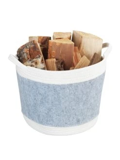 Das harmonisch abgerundete Designelement eignet sich für viele Zwecke. Zum Beispiel verwahrt der hübsche Korb mit 30 Liter Fassungsvermögen Näh- und Bastelbedarf, Wolle zum Stricken oder Häkeln, Wolldecken und andere Textilien, Zeitschriften, Bücher oder Kaminholz elegant auf. Positionieren können Sie das Wohnaccessoire beispielsweise stilvoll auf dem Boden, in der Nähe des Sofas, im Wohnraum oder auch in Reichweite nah am Bett. In diesen oder anderen Räumen des Hauses bietet sich auch eine versteckte Platzierung in Schrank oder Schublade an. Selbst in einem offenen Regal bringt der Ordnungshelfer Übersichtlichkeit und Struktur in den Alltag.