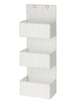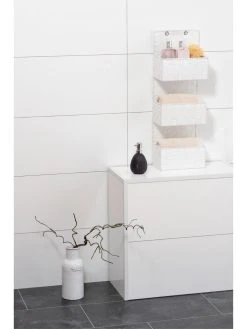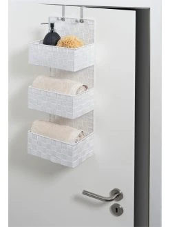 Der moderne Badorganizer Adria Weiß macht Ordnungsproblemen ein Ende. Der clevere Helfer aus hochwertigem Kunststoff-Geflecht mit stabilisierendem Metallgestell bietet auf drei Etagen viel Platz und Übersicht für Spangen, Bürsten oder andere Badezimmerutensilien. Besonders praktisch: Der Badkorb lässt sich ganz einfach stellen, hängen oder an die Wand schrauben – Sie haben die Wahl.