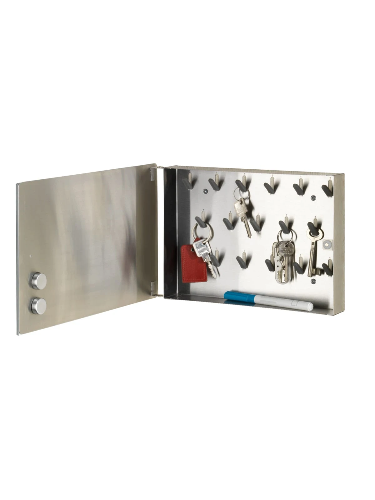 Die tägliche Suche nach den Tür-, Wohnungs-, Keller- oder Autoschlüsseln hat ein Ende! Nun haben sie alle ihren festen Platz in dem hochwertigen Schlüsselschrank. Im Inneren werden auf großzügigen 17 Edelstahlhaken die Schlüssel der ganzen Familie übersichtlich griffbereit gehalten. Der Schlüsselkasten ist ganz einfach mit dem Magnetverschluss zu öffnen und wieder zu schließen.