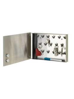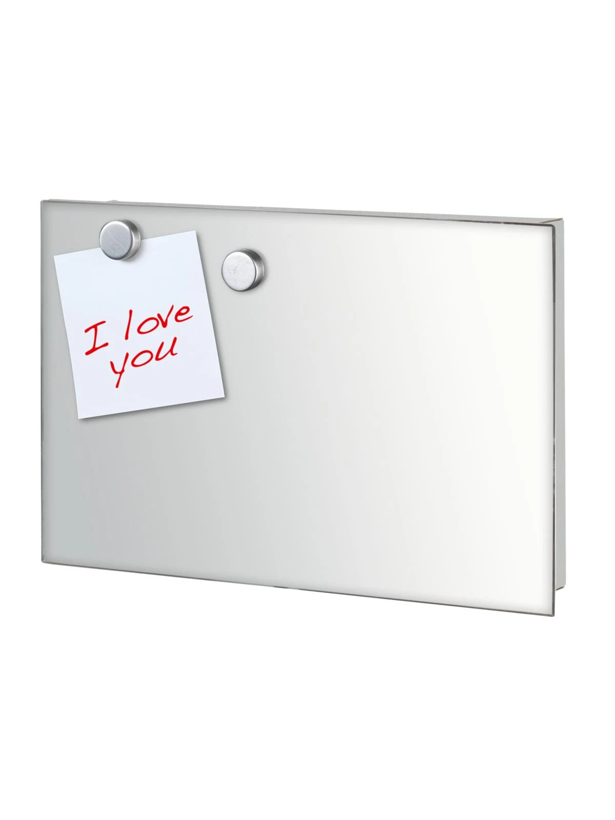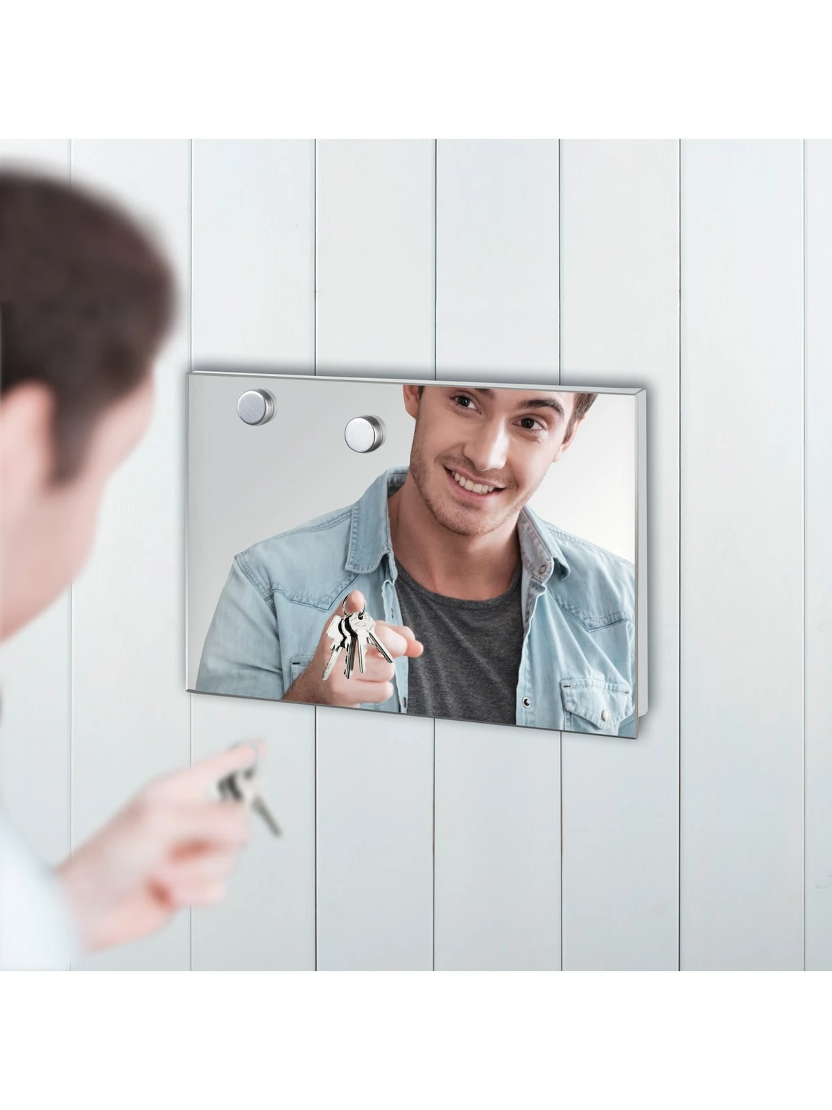 Besonders clever: Die Spiegelfront kann gleichzeitig als Memoboard verwendet werden. Durch zwei mitgelieferte Magnete können hier gut sichtbar wichtige Notizen, Fotos und Informationszettel platziert werden. So erinnert das innovative Schlüsselbrett an Termine, Einkäufe, etc. jedes Mal, wenn man es nutzt.