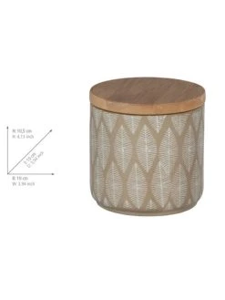 Die dekorative Universaldose Tupian eignet sich perfekt zur Aufbewahrung von Wattepads, Haarklammern, Schmuck oder anderen Kleinutensilien. Die Kosmetikdose verfügt über einen abnehmbaren Deckel aus nachhaltigem Bambus, der den Inhalt vor Staub und Feuchtigkeit schützt.