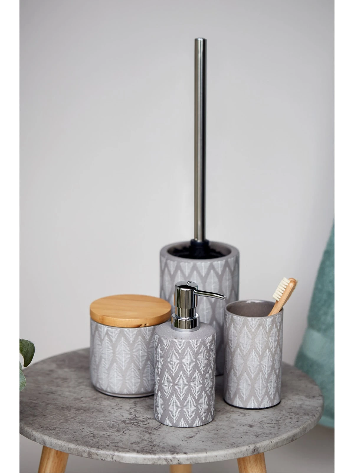 Die attraktive Bad-Accessoires Serie Tupian von WENKO verleiht Ihrem Bad einen ganz neuen Charme. Die Accessoires bestehen aus hochwertiger Keramik und sind in stilvollem Grau sehr aufwendig mit einem modernen Blatt-Muster bedruckt.