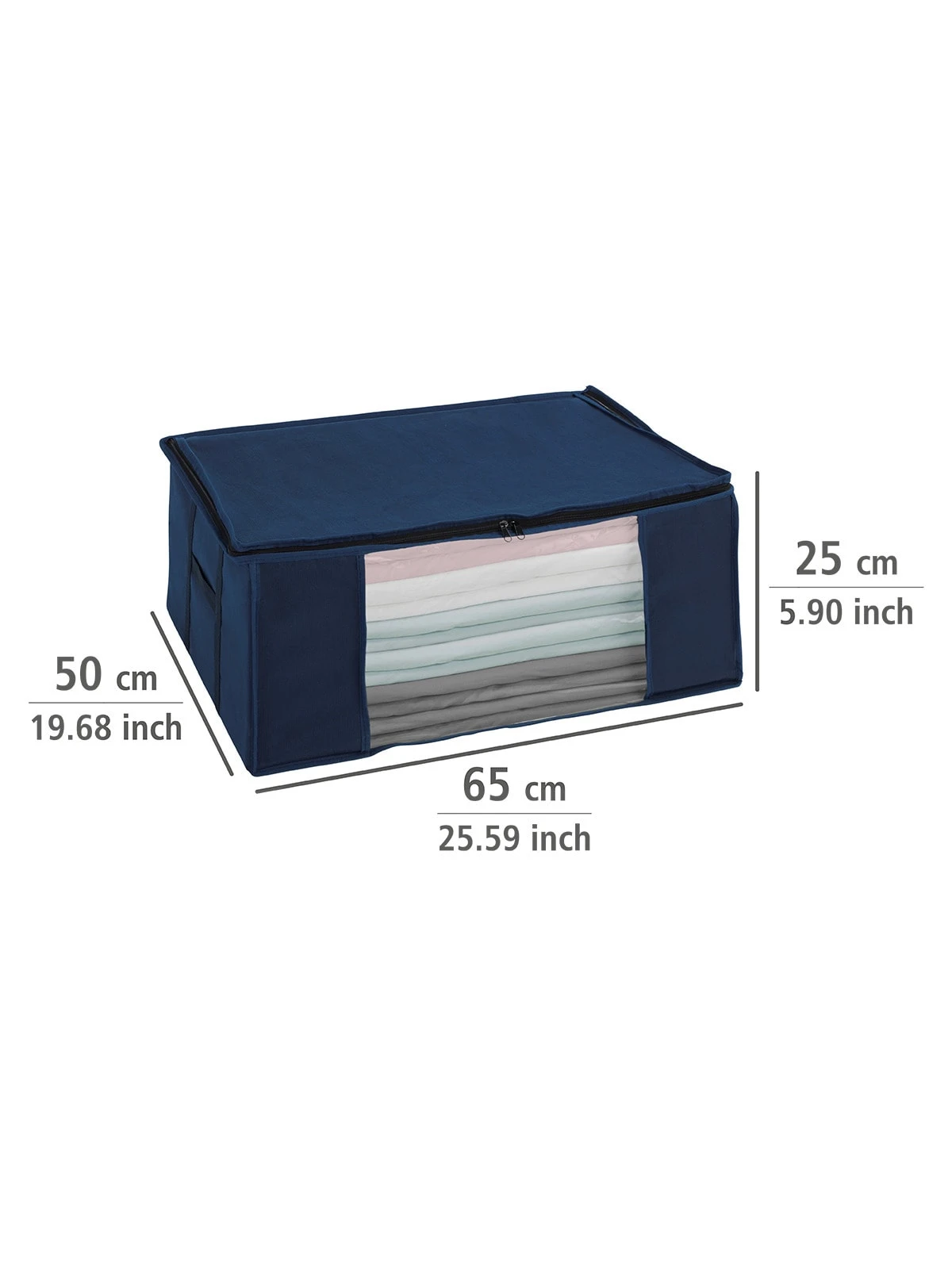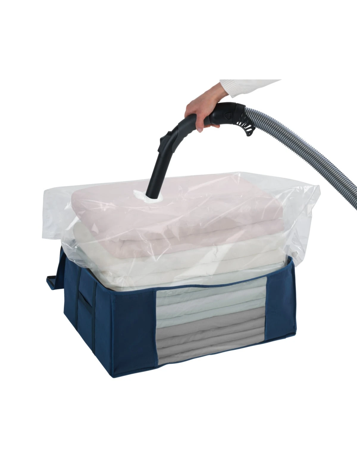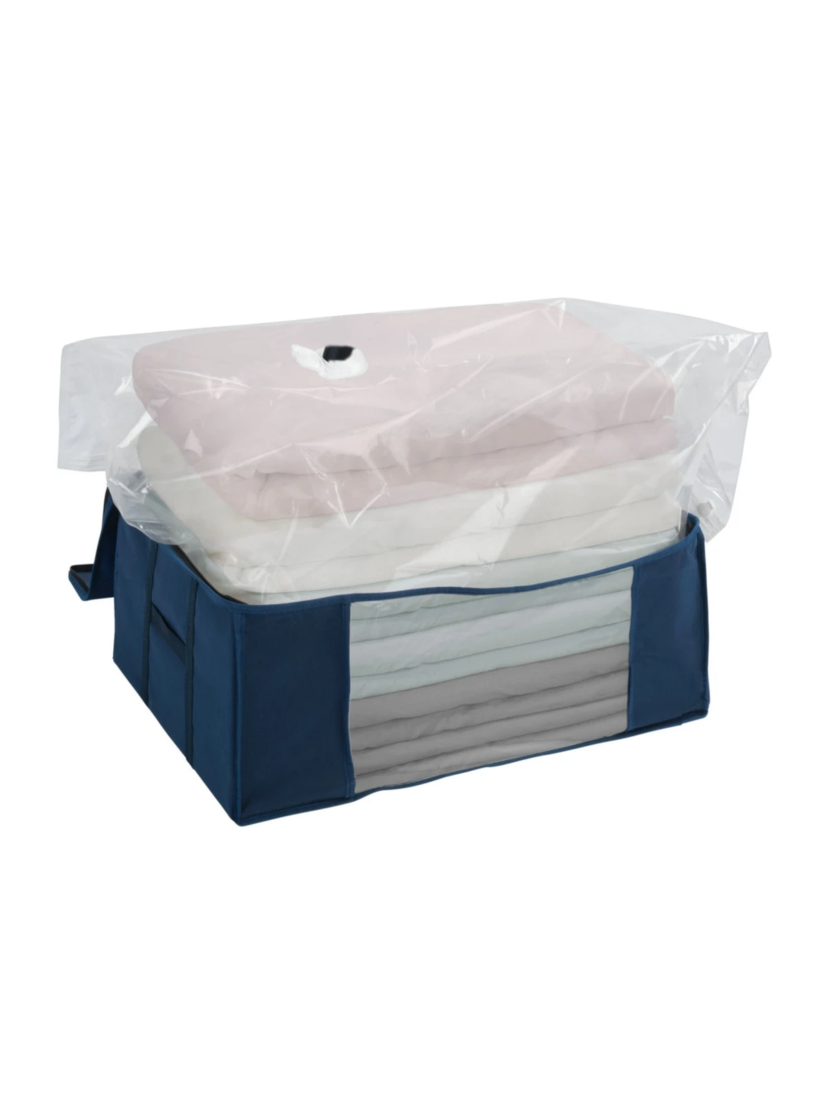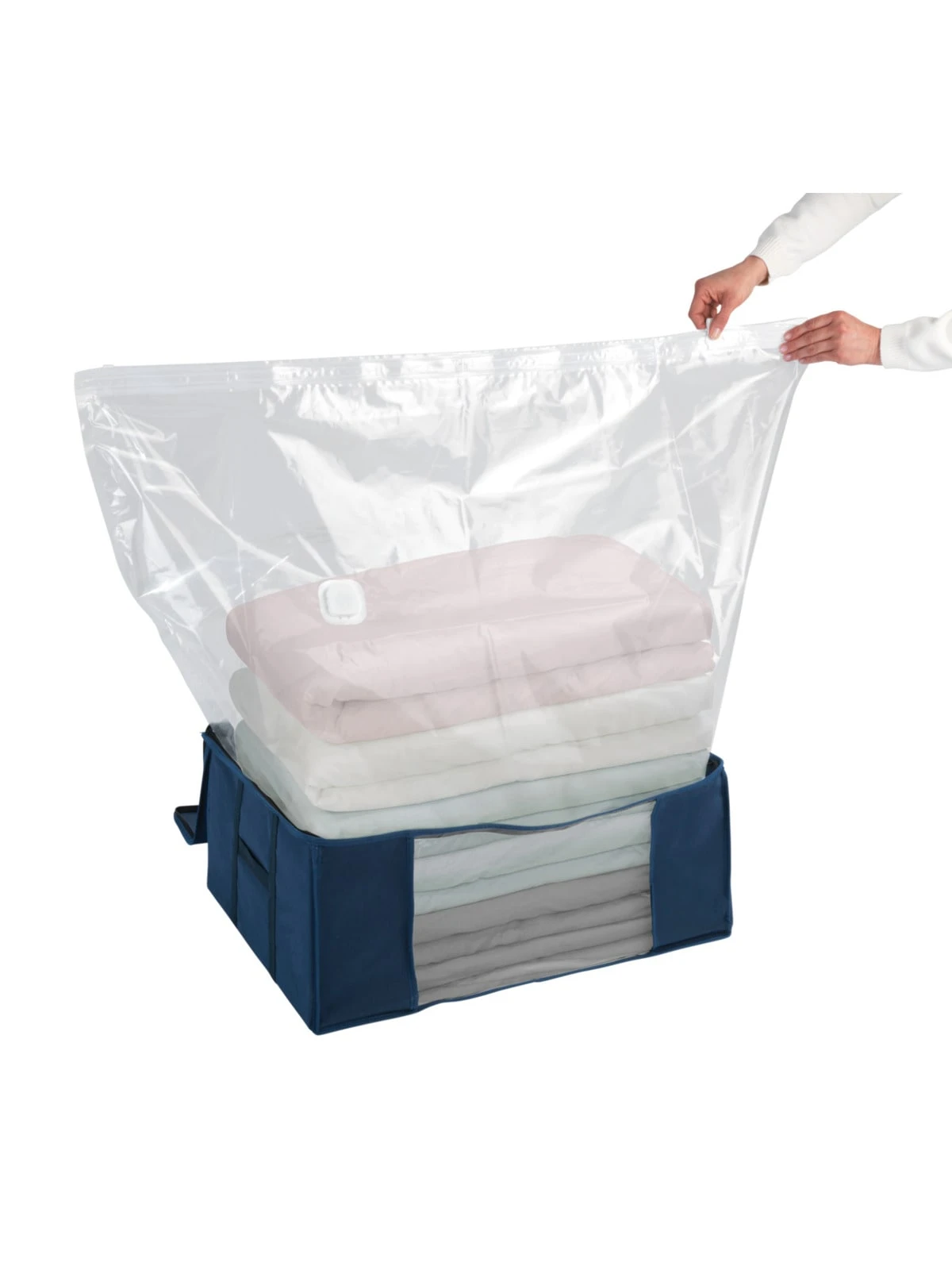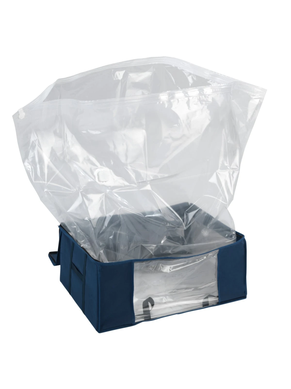 Das transparente Sichtfenster sorgt für einen schnellen Überblick auf den Inhalt, ohne die Box zu öffnen. Durch den praktischen Reißverschluss kann die Vakuum-Box jederzeit leicht geöffnet und geschlossen werden. Bei Entnahme aus dem Aufbewahrungssystem nimmt die Kleidung wieder das ursprüngliche Volumen an.