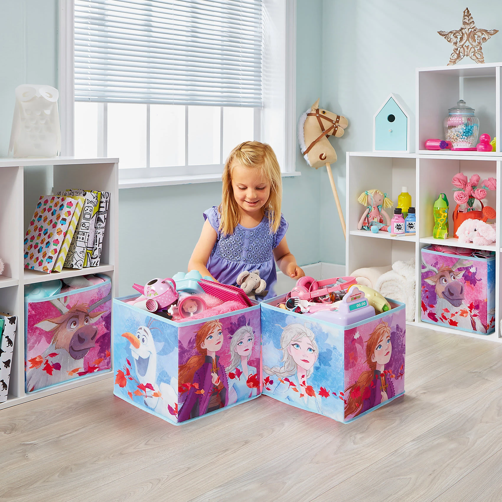 Die Aufbewahrungsboxen „Die Eiskönigin 2″ von WORLDS APART begeistern mit tollen Motiven von “Königin Elsa” und ihren Freunden auf allen Seiten! Darin können Kinder blitzschnell im Kinderzimmer Ordnung schaffen, denn die Boxen bieten viel Platz für Spielzeug, Kuscheltiere, schmutzige Wäsche und mehr. Werden die Boxen nicht gebraucht, können sie flach zusammengefaltet und platzsparend verstaut werden.